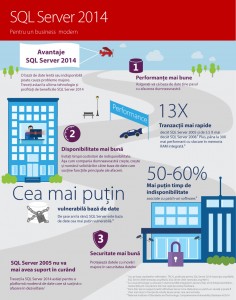 SQL Server 2014 oferă performanță esențială datorită bazei de date cu stocare în memoria RAM integrată, capacității mult mai rapide de extragere a detaliilor de date prin instrumente familiare și platformei pentru medii cloud hibride.